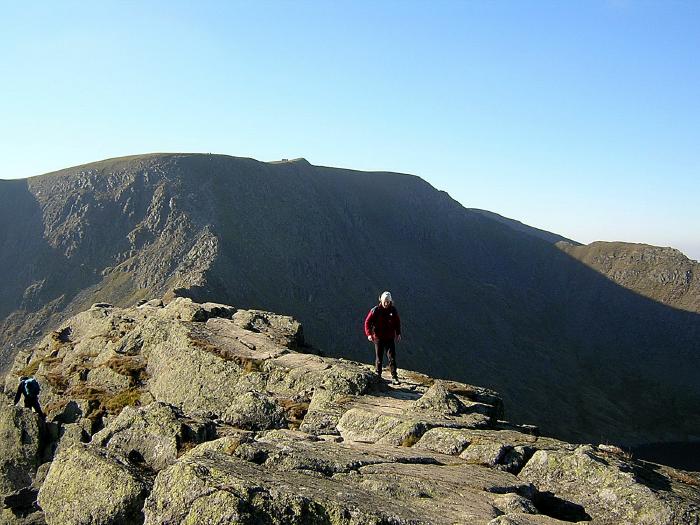 Intrepid adventurer on Striding edge slabs